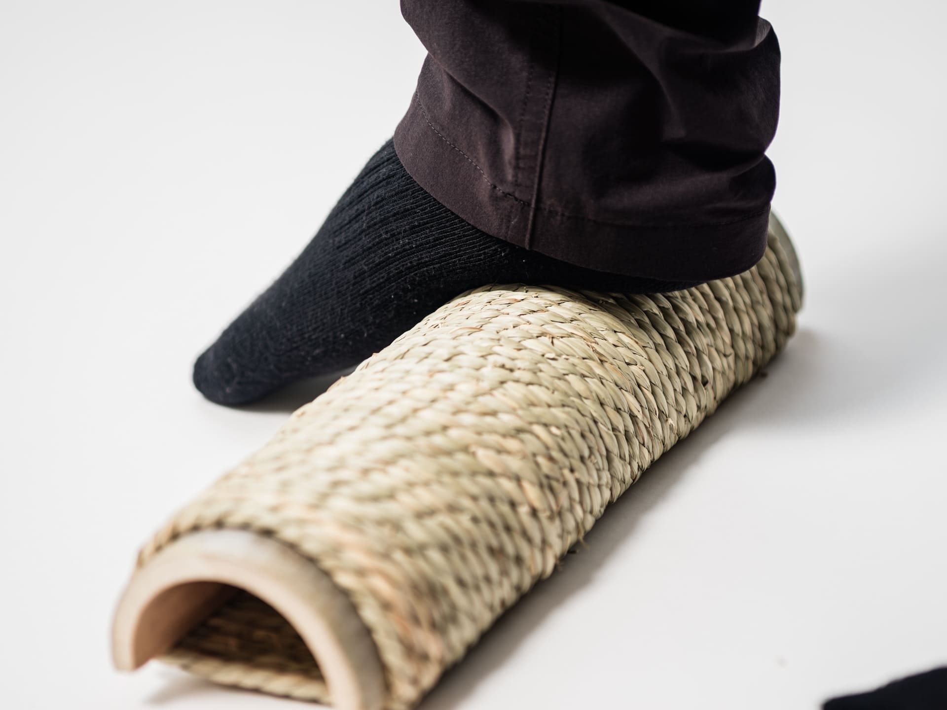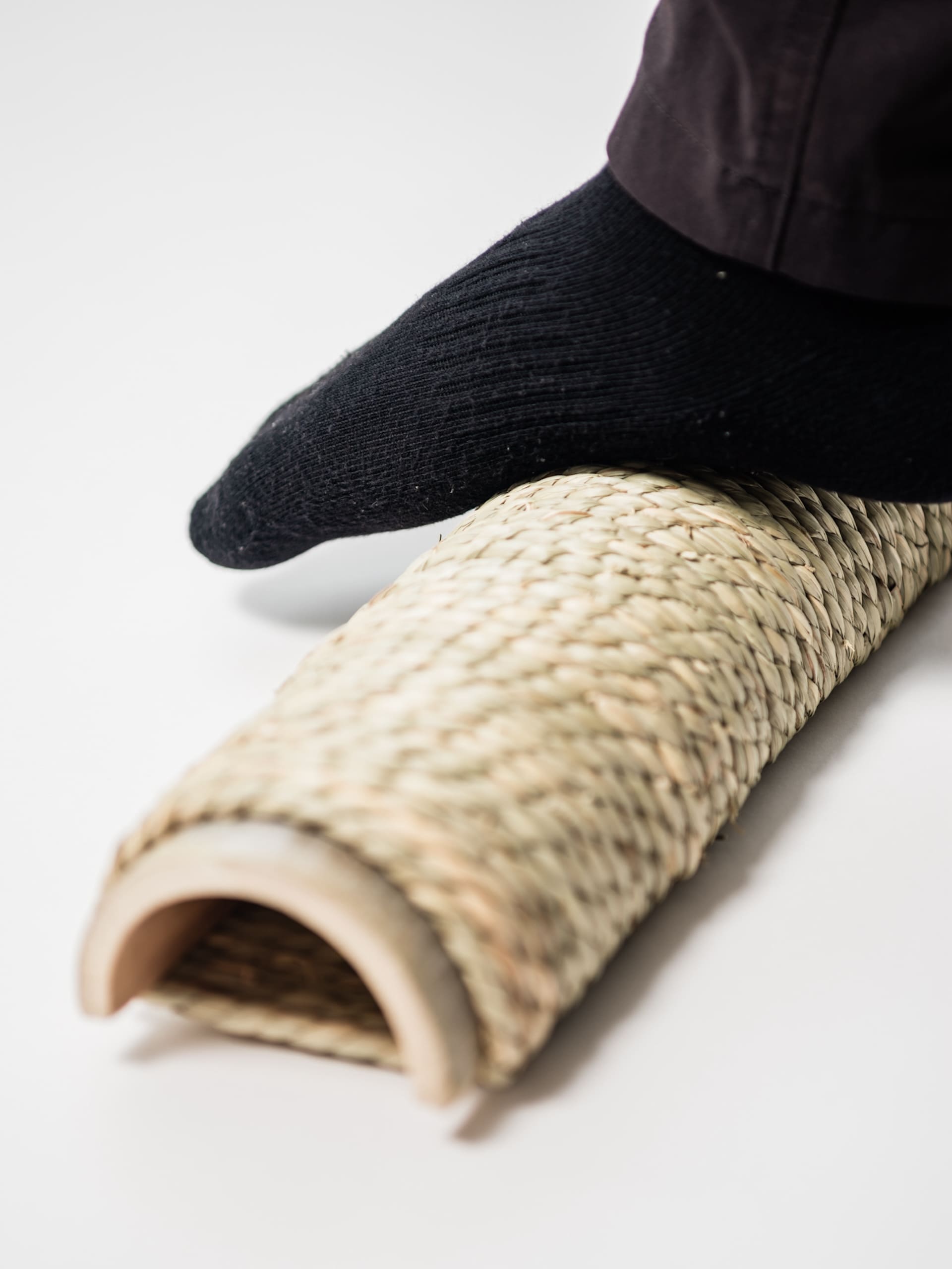 - 平らな場所に竹踏みを置きます。